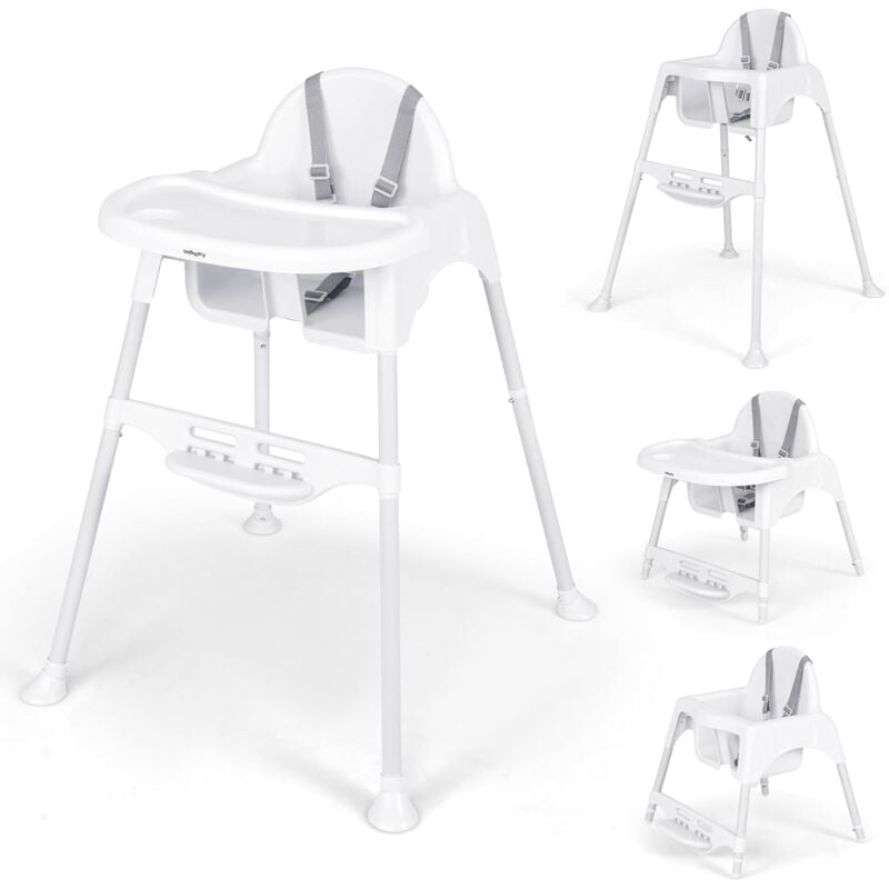 4 en 1 Chaise Haute Bébé Evolutive, 6-36 Mois, Charge 15 kg, Chaise Bebe Convertible, Plateau et Repose-pieds Réglable Amovible, Harnais à 5 Points,