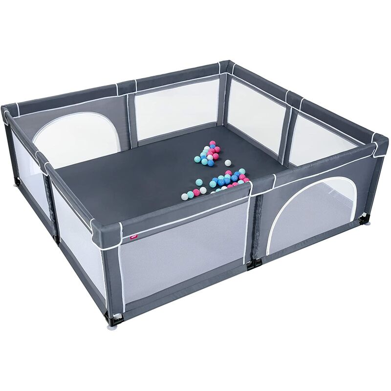 GOPLUS Parc Bébé 10 Mois à 6 Ans, Parc Bebe en maille avec Balles et 4 Anneaux, Centre D'activités de Parc Enfant, Idéal pour Intérieur et Extérieur