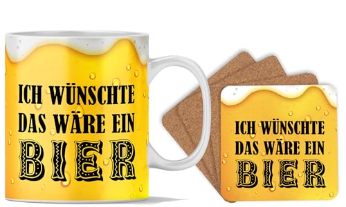 Tasse à bière avec dessous de verre | Je souhaite que ce soit une bière | Cadeaux de fête des pères pour papa, cadeau pour homme, cadeau de bière pour homme, fête des pères, amis et collègues, cadeau