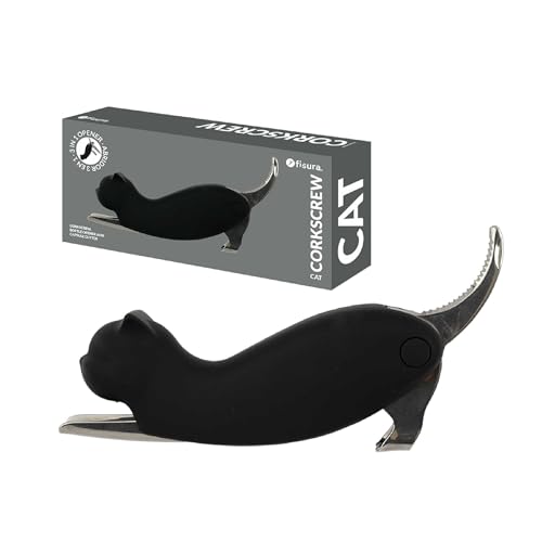 Fisura - Tire-bouchon original “chat”. Tire-bouchon en acier inoxydable avec coupe-capsule intégré. Ouvre-bouteille de vin et décapsuleur amusant. Ouvre-bière cadeau.