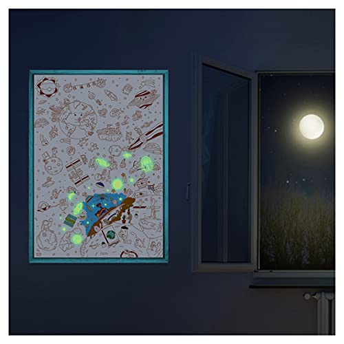 Yeti Blank Designs - Poster Géant XL à Colorier + 100+ Stickers phosphorescents Galaxie étoiles - Mars - 100x70cm - idée Cadeau Poster + Autocollants - Facile à encadrer - coloriage Enfant