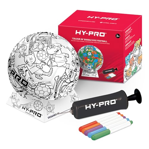 Hy-Pro Doodlekick Ballon de Football à colorier avec Pompe Incluse – Ballon de Taille 2 avec Support et stylos pour coloriage personnalisé – Balle gribouillée pour Enfants, Excellent Cadeau pour