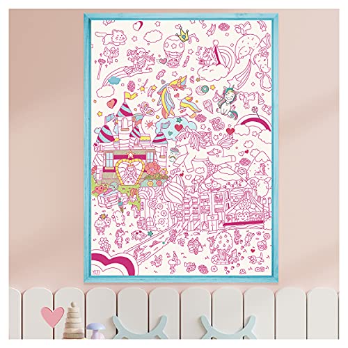 YETI BLANK DESIGNS - Poster Géant à Colorier avec 80+ stickers - Licorne Unicorn - format XL (100x70cm) - idée cadeau poster avec autocollants - facile à encadrer - immense coloriage enfants et adults