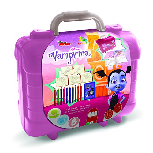 Multiprint Coffret de voyage Disney Vampirina, fabriqué en Italie, album de coloriage, avec puzzle et crayons, set de tampons Bimbi, bois et caoutchouc naturel, encre lavable non toxique, idée cadeau,