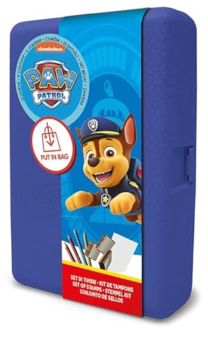 Multiprint Pochette Trousse Paw Patrol Boy, Made in Italy, 3 Timbres et Crayons, Livre de Coloriage, Tampons Enfants, en Bois et Caoutchouc Naturel, Encre Lavable Non Toxique, Idée Cadeau, Art.85903