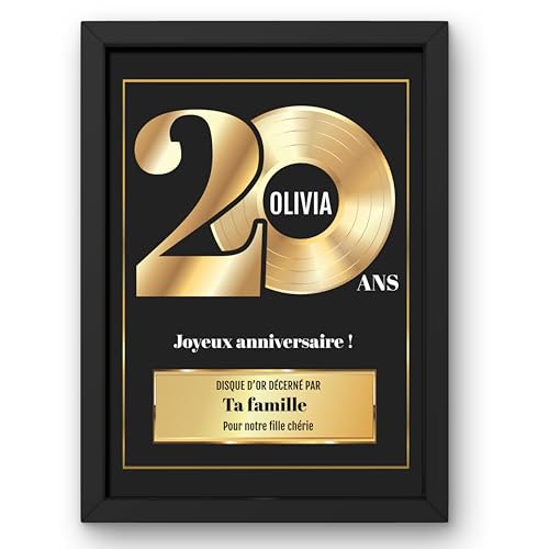 Disque d’Or personnalisé photo prénoms texte – Affiche avec ou sans cadre, Toile ou Plexiglas – Cadeau couple Amour – Idée cadeau Noël Anniversaire Mariage Femme Homme (20 ans anniversaire)