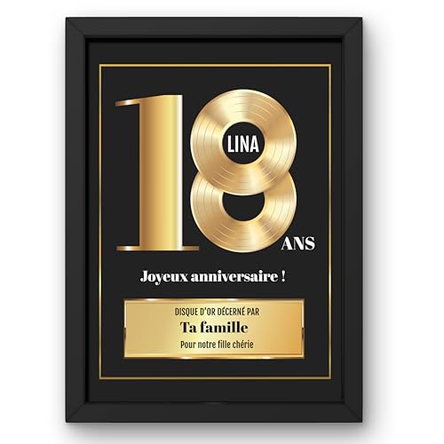 Disque d’Or personnalisé photo prénoms texte – Affiche avec ou sans cadre, Toile ou Plexiglas – Cadeau couple Amour – Idée cadeau Noël Anniversaire Mariage Femme Homme (18 ans anniversaire)