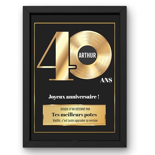 Disque d’Or personnalisé photo prénoms texte – Affiche avec ou sans cadre, Toile ou Plexiglas – Cadeau couple Amour – Idée cadeau Noël Anniversaire Mariage Femme Homme (40 ans anniversaire)