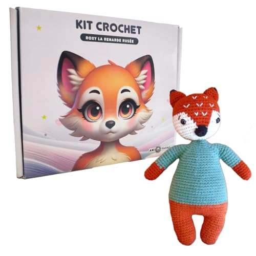 Aniyarns - Kit Crochet Renard Roxy (Niveau Facile) - Peluche Amigurumi Roux - Kit Complet Laine, Crochet & Tuto Vidéo 100% Français - Idée Cadeau Loisir Créatif Adulte Enfant