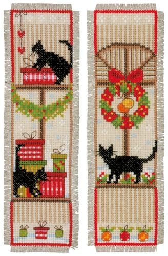 Vervaco De Point De Croix Compté Marque-Page DIY (lot de 2) AMBIANCE DE NOËL Kit Complet Loisir Créatif Adulte Cadeau De Lecture Broderie Débutant ca. 6 x 20 cm Cross Stitch