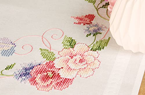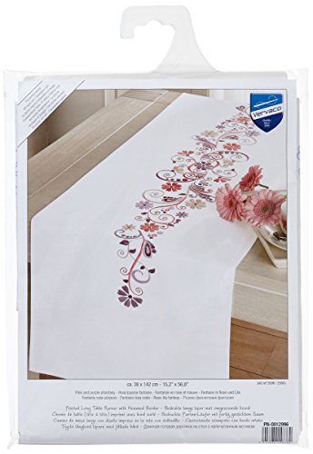 Vervaco Kit Broderie Pré-Imprimé Chemin De Table FANTAISIE EN ROSE ET MAUVE Complet Set DIY Adulte Decoration Manuelle Loisir Créatif Cadeau Femme ca. 38 x 142 cm Embroidery Patron