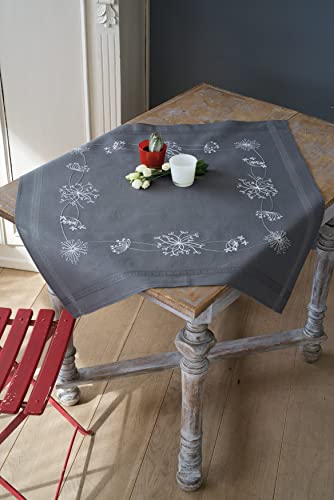 Vervaco Kit Broderie Pré-Imprimé Nappe FLEURS BLANCHES Complet Set DIY Adulte Decoration Table Manuelle Loisir Créatif Cadeau Femme ca. 80 x 80 cm Embroidery Patron