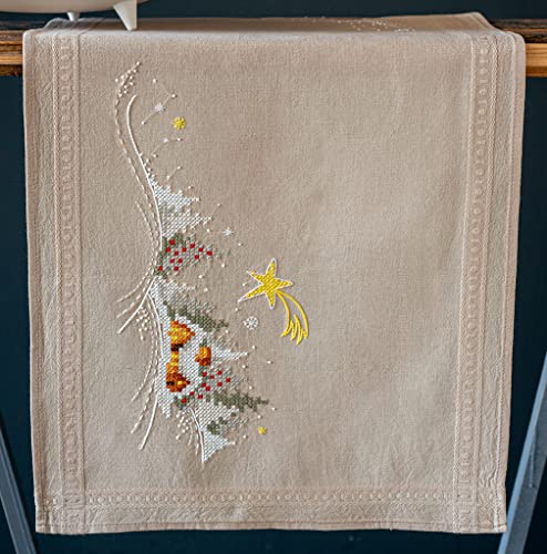 Vervaco Kit Broderie Pré-Imprimé Chemin De Table VILLAGE HIVERNAL DANS LA NEIGE Complet Set DIY Adulte Decoration Manuelle Loisir Créatif Cadeau Femme ca. 40 x 100 cm Embroidery Patron