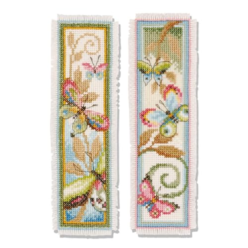 Vervaco De Point De Croix Compté Marque-Page DIY (lot de 2) PAPILLONS DÉCO Kit Complet Loisir Créatif Adulte Cadeau De Lecture Broderie Débutant ca. 6 x 20 cm Cross Stitch