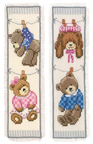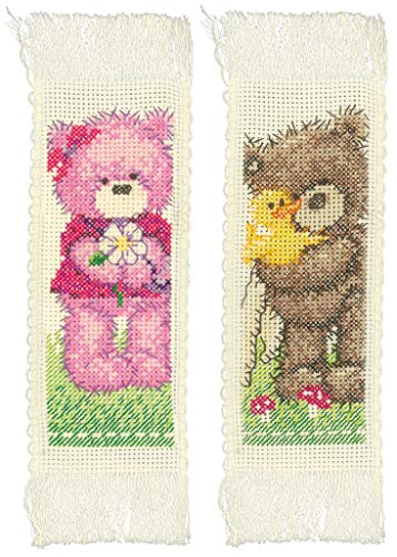 VERVACO De Point De Croix Compté Marque-Page DIY (Lot de 2) Ours DE Naissance Kit Complet Loisir Créatif Adulte Cadeau De Lecture Broderie Débutant ca. 6 x 20 cm Cross Stitch, Fabric, Multicolore