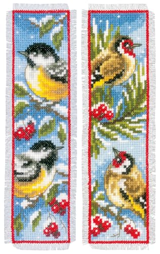 Vervaco De Point De Croix Compté Marque-Page DIY (lot de 2) OISEAUX EN HIVER Kit Complet Loisir Créatif Adulte Cadeau De Lecture Broderie Débutant ca. 6 x 20 cm Cross Stitch