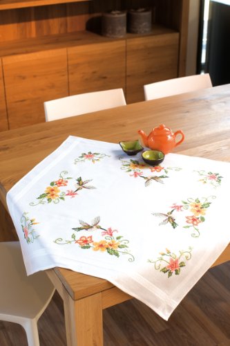 Vervaco Kit Broderie Pré-Imprimé Nappe COLIBRI Complet Set DIY Adulte Decoration Table Manuelle Loisir Créatif Cadeau Femme ca. 80 x 80 cm Embroidery Patron