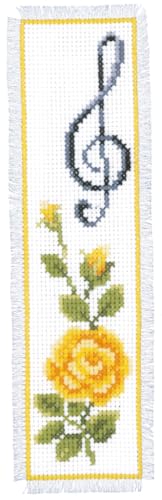 Vervaco De Point De Croix Compté Marque-Page DIY ROSE AVEC CLÉ DE SOL Kit Complet Loisir Créatif Adulte Cadeau De Lecture Broderie Débutant ca. 6 x 20 cm Cross Stitch