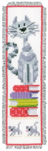 Vervaco De Point De Croix Compté Marque-Page DIY UN CHAT ET UN LIVRE Kit Complet Loisir Créatif Adulte Cadeau De Lecture Broderie Débutant ca. 6 x 20 cm Cross Stitch
