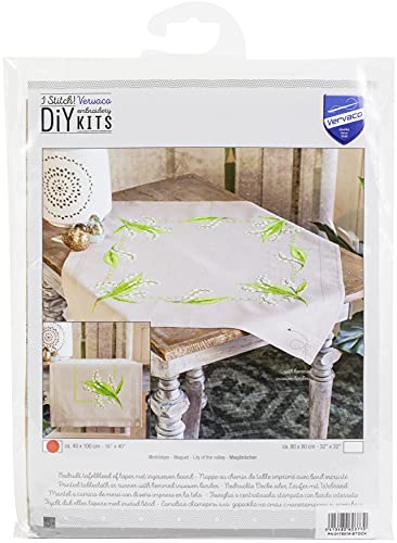 VERVACO Kit Broderie Pré-Imprimé Chemin De Table MUGUET Complet Set DIY Adulte Decoration Manuelle Loisir Créatif Cadeau Femmeca. 40 x 100 cm Embroidery Patron