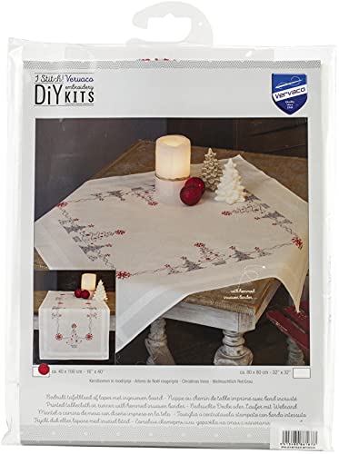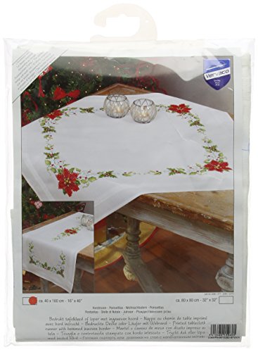 Vervaco Kit Broderie Pré-Imprimé Nappe POINSETTIAS Complet Set DIY Adulte Decoration Table Manuelle Loisir Créatif Cadeau Femme ca. 80 x 80 cm Embroidery Patron