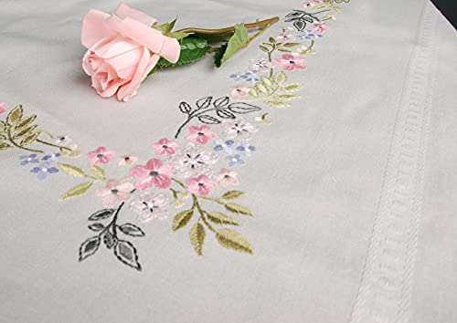 Vervaco Kit Broderie Pré-Imprimé Nappe Fleurs Printemps Complet Set DIY Adulte Decoration Table Manuelle Loisir Créatif Cadeau Femme ca. 80 x 80 cm Embroidery Patron, Coton, Blanc
