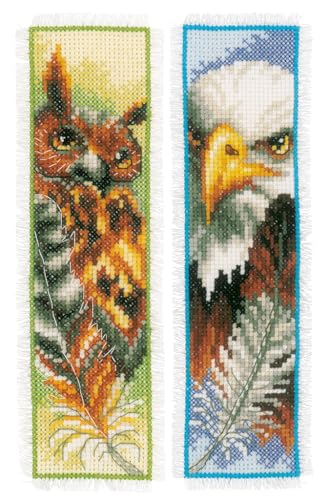 VERVACO De Point De Croix Compté Marque-Page DIY (Lot de 2) Chouette ET Aigle Kit Complet Loisir Créatif Adulte Cadeau De Lecture Broderie Débutant ca. 6 x 20 cm Cross Stitch, Fabric, Multicolore