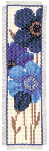 Vervaco De Point De Croix Compté Marque-Page DIY ANÉMONES BLEUES Kit Complet Loisir Créatif Adulte Cadeau De Lecture Broderie Débutant ca. 6 x 20 cm Cross Stitch
