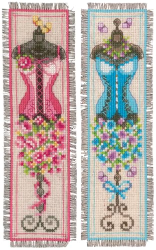 Vervaco De Point De Croix Compté Marque-Page DIY (lot de 2) CORSET Kit Complet Loisir Créatif Adulte Cadeau De Lecture Broderie Débutant ca. 6 x 20 cm Cross Stitch