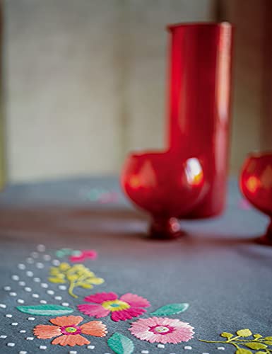Vervaco Kit Broderie Pré-Imprimé Nappe Fleurs ET Feuilles Complet Set DIY Adulte Decoration Table Manuelle Loisir Créatif Cadeau Femme ca. 80 x 80 cm Embroidery Patron, Coton, Multicolore, 12 Pièces