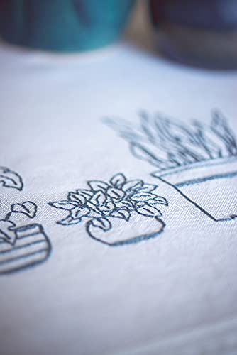 VERVACO Kit Broderie Pré-Imprimé Nappe Plantes D'INTÉRIEUR Complet Set DIY Adulte Decoration Table Manuelle Loisir Créatif Cadeau Femme ca. 80 x 80 cm Embroidery Patron, Coton, Multicolore