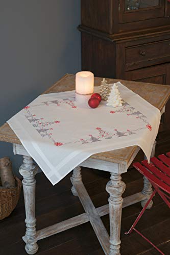 Vervaco Kit Broderie Pré-Imprimé Nappe NOËL LUTINS Complet Set DIY Adulte Decoration Table Manuelle Loisir Créatif Cadeau Femme ca. 80 x 80 cm Embroidery Patron