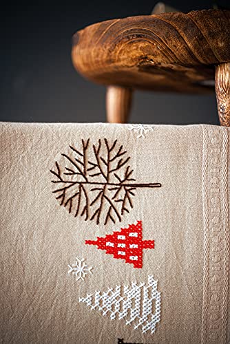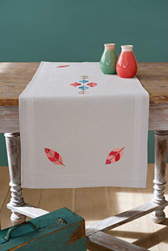 Vervaco Kit Broderie Pré-Imprimé Chemin De Table FEUILLES D'AUTOMNE Complet Set DIY Adulte Decoration Manuelle Loisir Créatif Cadeau Femme ca. 40 x 100 cm Embroidery Patron