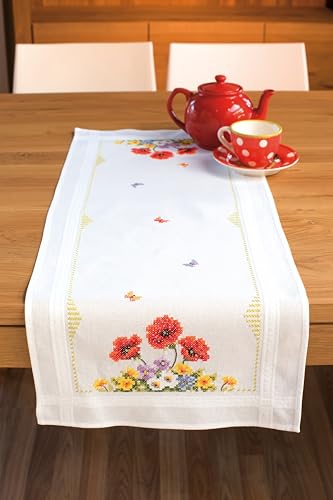 Vervaco Kit Broderie Pré-Imprimé Chemin De Table FLEURS DE PRINTEMPS SAUVAGES Complet Set DIY Adulte Decoration Manuelle Loisir Créatif Cadeau Femme ca. 40 x 100 cm Embroidery Patron