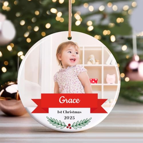Boule de Noël Personnalisable Photo, Décoration Sapin de Noel 2025 Boule de Noel Personnalisée Photo, Idee Cadeau Personnalisé Originales pour Mon Premier Noël, Couples, Famille et Amis