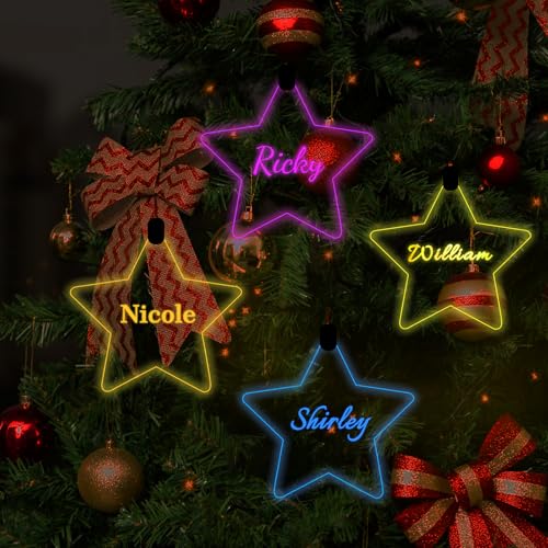 Ornements de Noel Personnalisable avec Nom,Boule de Noël Personnalisée avec lumière LED pour la Maison,Vitrine,Décoration d'arbre de Noël Cadeau pour Familles,Amis,Enfants,Animaux (Étoile)
