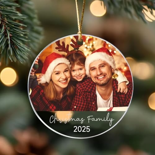 Rainsar Boule de Noël pour Famille 2023, Décorations du Sapin de Noël Originales, Ornement de Noël avec Photo Personnalisée, Cadeau de Noël pour Famille et Amis