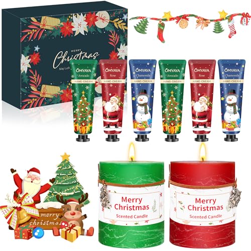 Coffret Cadeau Femme Noel, Crèmes Mains Hydratantes 6 x 30ml & Bougies Parfumées 2 x 129g,Coffret Cadeau pour Femmes et Hommes,Maman, sœur, amis, famille, collègues calendrier de l'avent 2025 femme