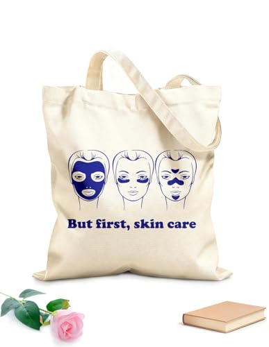 XIARON Sac de courses en toile de coton Soin de la peau, masque, salon de beauté, spa, femme relaxante tissu épais de 340g/m² Utilise comme sac cadeau L Bleu sombre