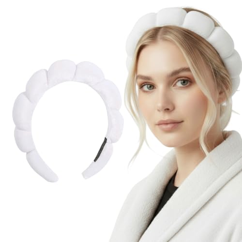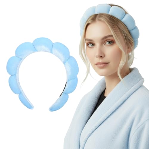 Bottega della Principessa – Serre-tête maquillage en velours bombé – bandeau soin visage & spa, démaquillage, lavable et réglable, idée cadeau femme (Bleu ciel, Serre tete)