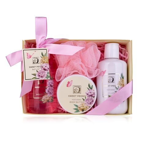 Accentra - Set de douche pour femme SWEET PEONY dans une belle boîte cadeau - Set de soin 4 pièces avec gel douche, lotion pour le corps - Idéal pour la Saint-Valentin & la Fête des Mères