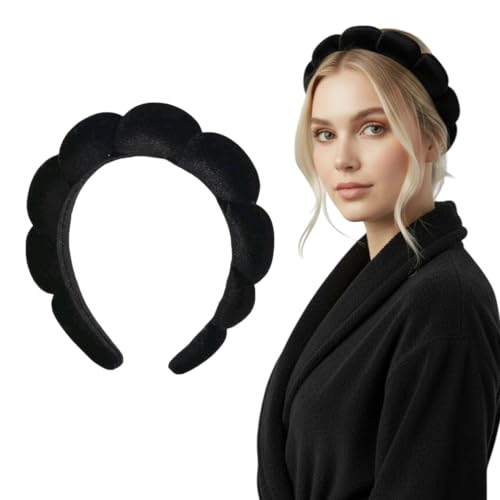 Bottega della Principessa – Serre-tête maquillage femme en velours bombé noir – bandeau soin visage & spa, lavable et réglable, idée cadeau