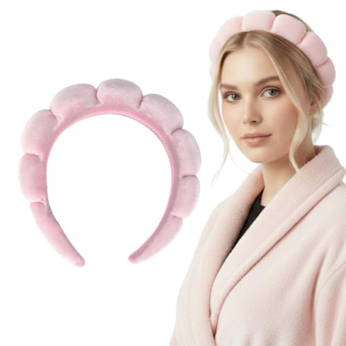 Bottega della Principessa – Serre-tête maquillage en velours bombé rose – bandeau soin visage & spa, lavable et réglable, idée cadeau femme
