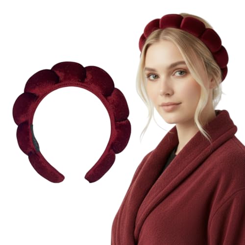 Bottega della Principessa – Serre-tête maquillage en velours bombé bordeaux – bandeau soin visage & spa, lavable et réglable, idée cadeau femme