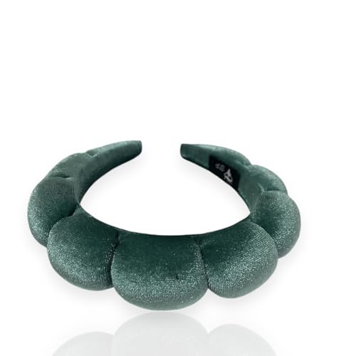 Bottega della Principessa – Serre-tête maquillage en velours bombé vert émeraude – bandeau soin visage & spa, lavable et réglable, idée cadeau femme