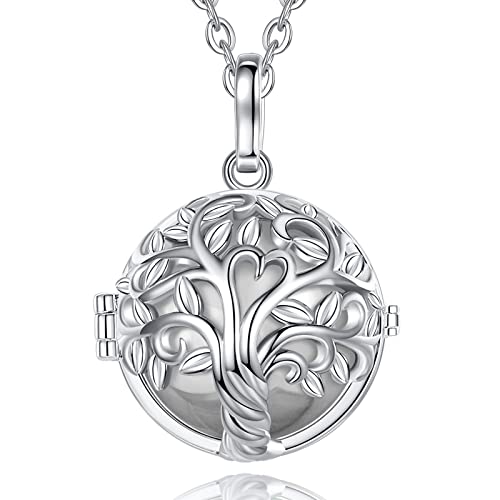 AEONSLOVE Collier Bola Grossesse Collier Musique Carillon Bell Pendentif Arbre de Vie pour Femmes Enceinte Bébé, Cadeau Original de Noël Anniversaire Naissance, Chaîne 114cm (argent)