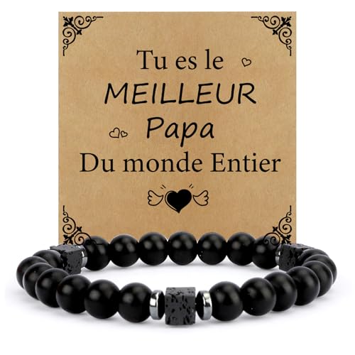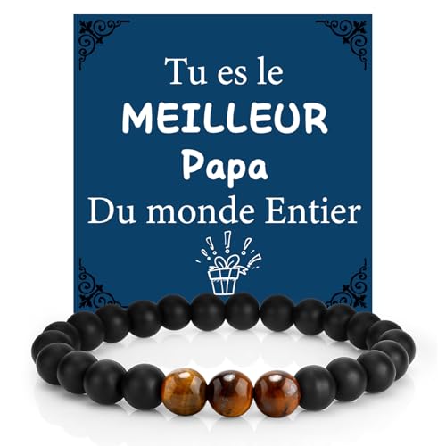 MANVEN Cadeau Papa Fête des Pères Bracelet Fete des Pere Bracelet Beau Papa Idée Cadeau Anniversaire Noël Homme 30 40 50 60 Ans Pierre Naturelle