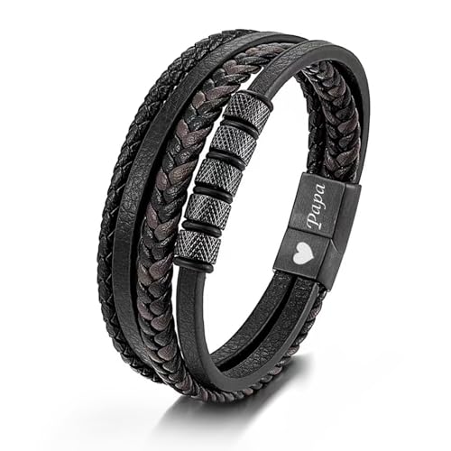 Jbniuay Cadeau papa - Cadeau Fete des Peres - Bracelet Cadeau Papa,Bracelet noir Papa Bracelet en cuir avec gravure “Papa ” “Meilleur Papa” Cadeau Fête des Pères