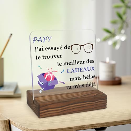 Cadeau Grand Pere Cadeau Papy Cadeau pour Grand-Pere Cadeau Noël Papy Décoration Acrylique Cadeau Papi Anniversaire Cadeau Fête des Pères Cadeau Anniversaire Papy Cadeau Fete des Grand Pere
