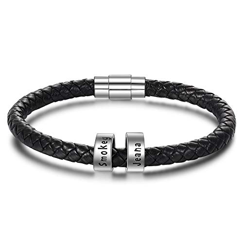 Ashleymade Bracelet Personnalisé Hommes avec 1-5 Noms 19-21.5cm Graver Cuir Bracelet Personnalisés Cadeau pour Pères Fils Grands-Pères Maris Cadeau Fete Des Peres Noël